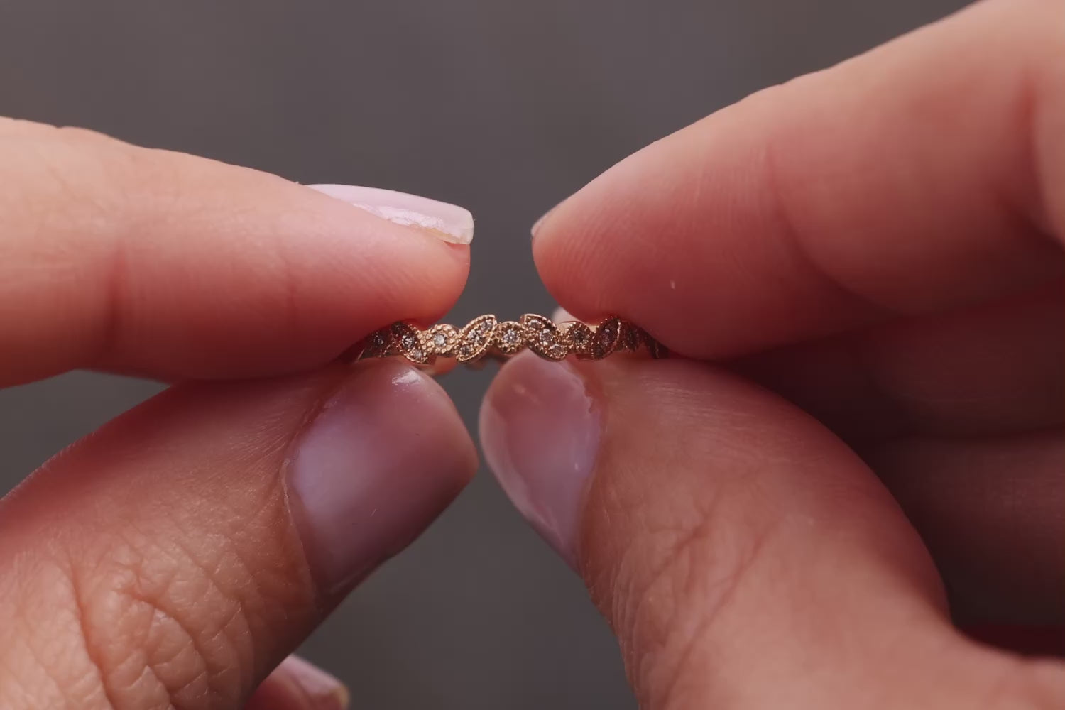 JA! Der Verlobungsring Dornröschen Small kann hervorragend als Vorsteckring zum Ehering dazu gesteckt werden. Durch die kleinen Öffnungen in dem floralen Muster wirkt der Verlobungsring wunderbar leicht & luftig.