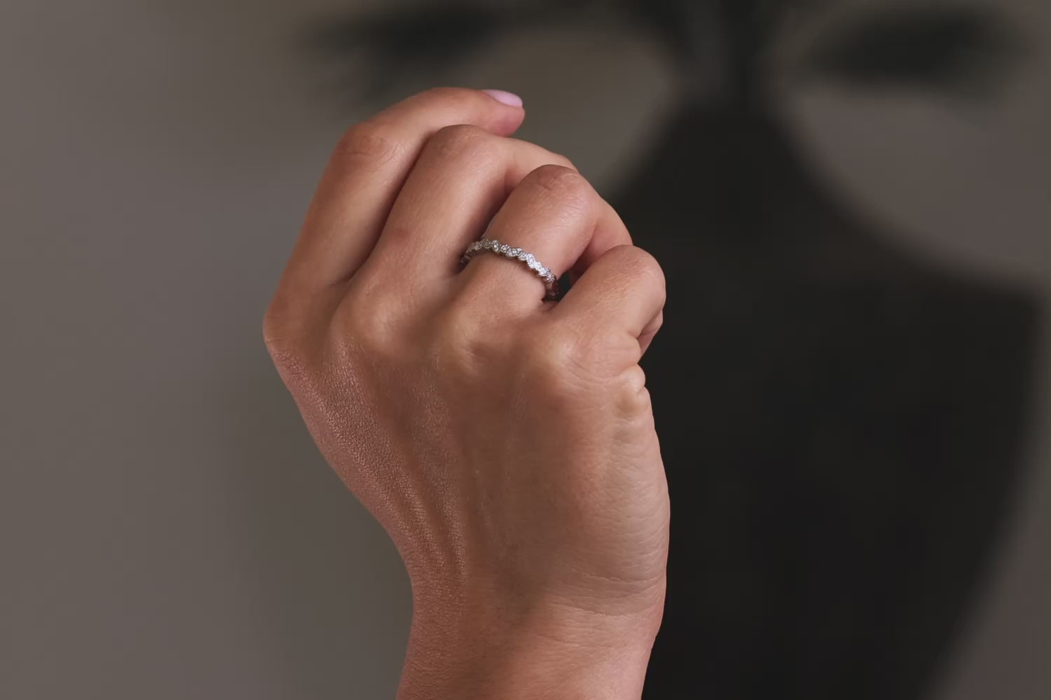 JA! Der Verlobungsring Dornröschen Small kann hervorragend als Vorsteckring zum Ehering dazu gesteckt werden. Durch die kleinen Öffnungen in dem floralen Muster wirkt der Verlobungsring wunderbar leicht & luftig.