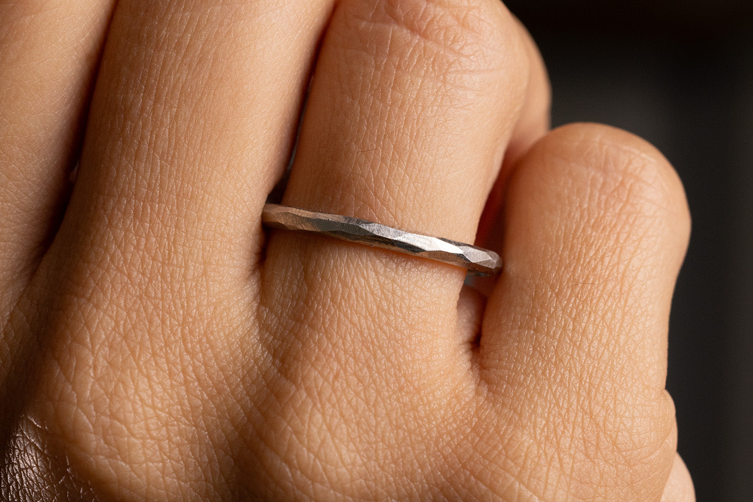 Wild, rau - grenzenlos. Ungewöhnlich, schroff und dennoch zart - so ist der Ring Grenzenlos. Die kleinen Facetten reflektieren das einfallende Licht, so entsteht ein Ring, der zwar glänzt, aber dennoch seinen rustikalen Charme behält.