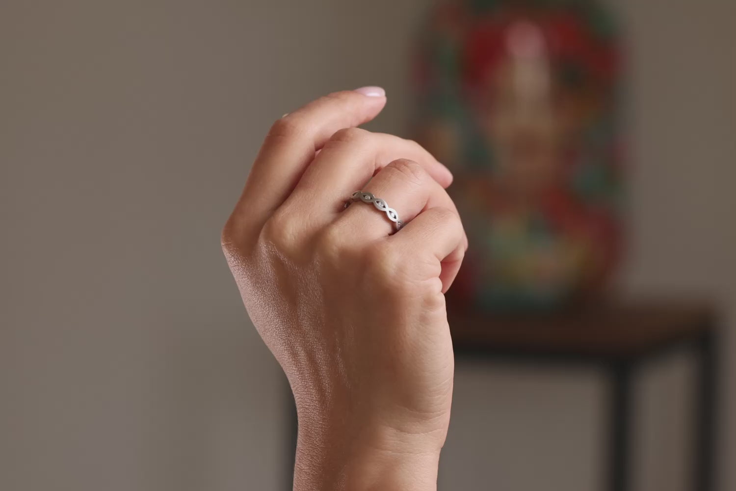 JA! Der Verlobungsring Infinity kann hervorragend als Vorsteckring zum Ehering dazu gesteckt werden. Durch die kleinen Öffnungen in dem Muster wirkt der Verlobungsring Infinity wunderbar leicht & luftig.