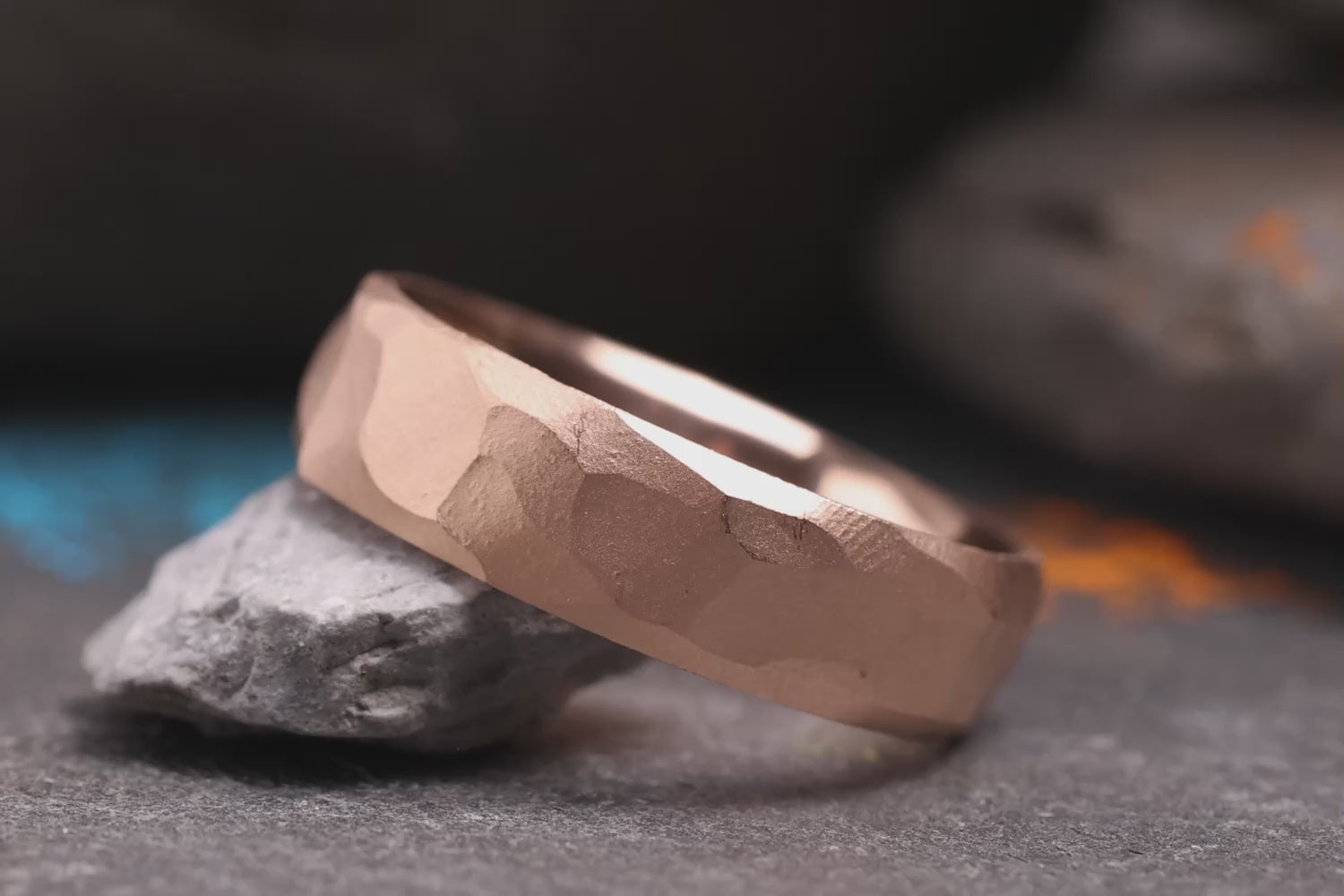 Ehering 585er Rotgold Küsstensand an Werkbank