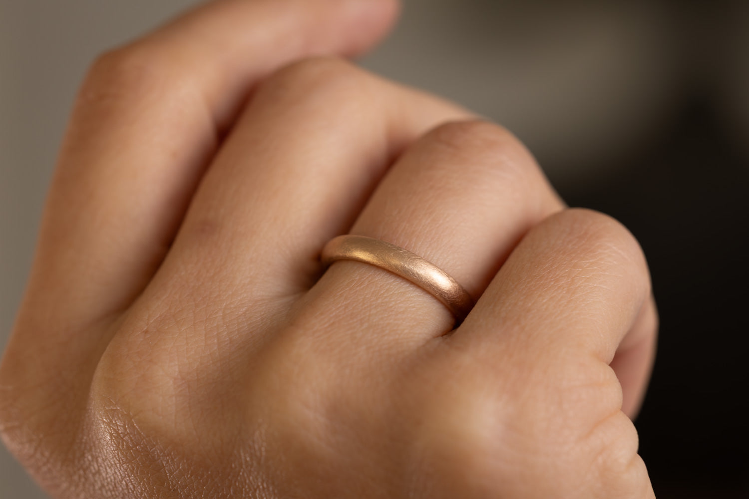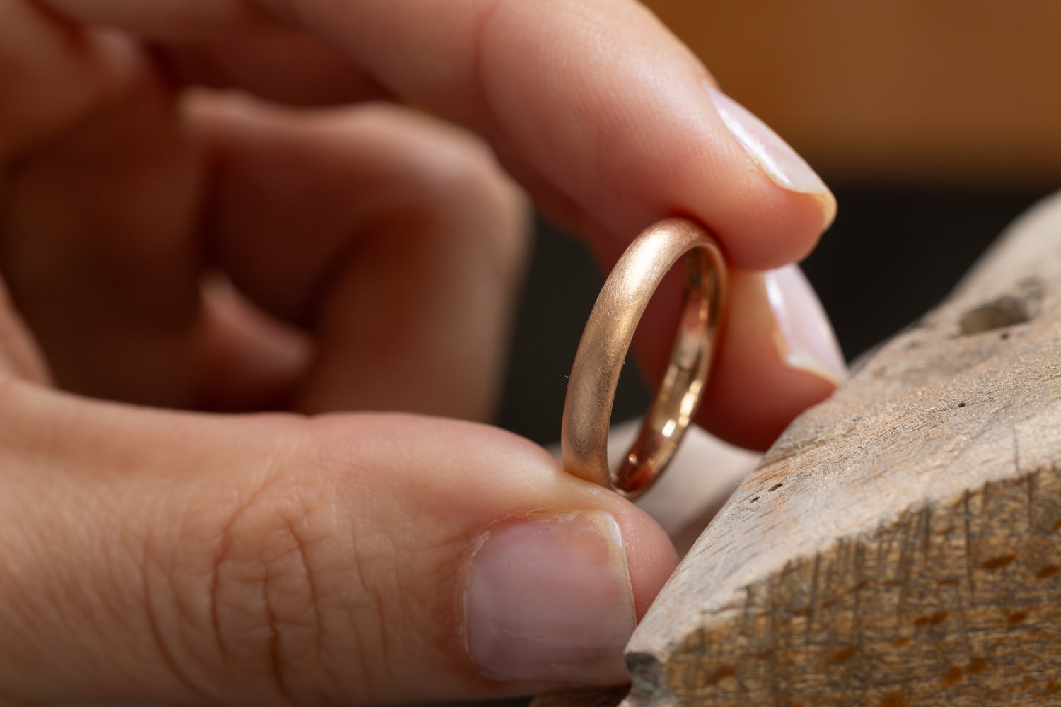 Ehering 585er Rotgold Pur Seidenmatt an Werkbank