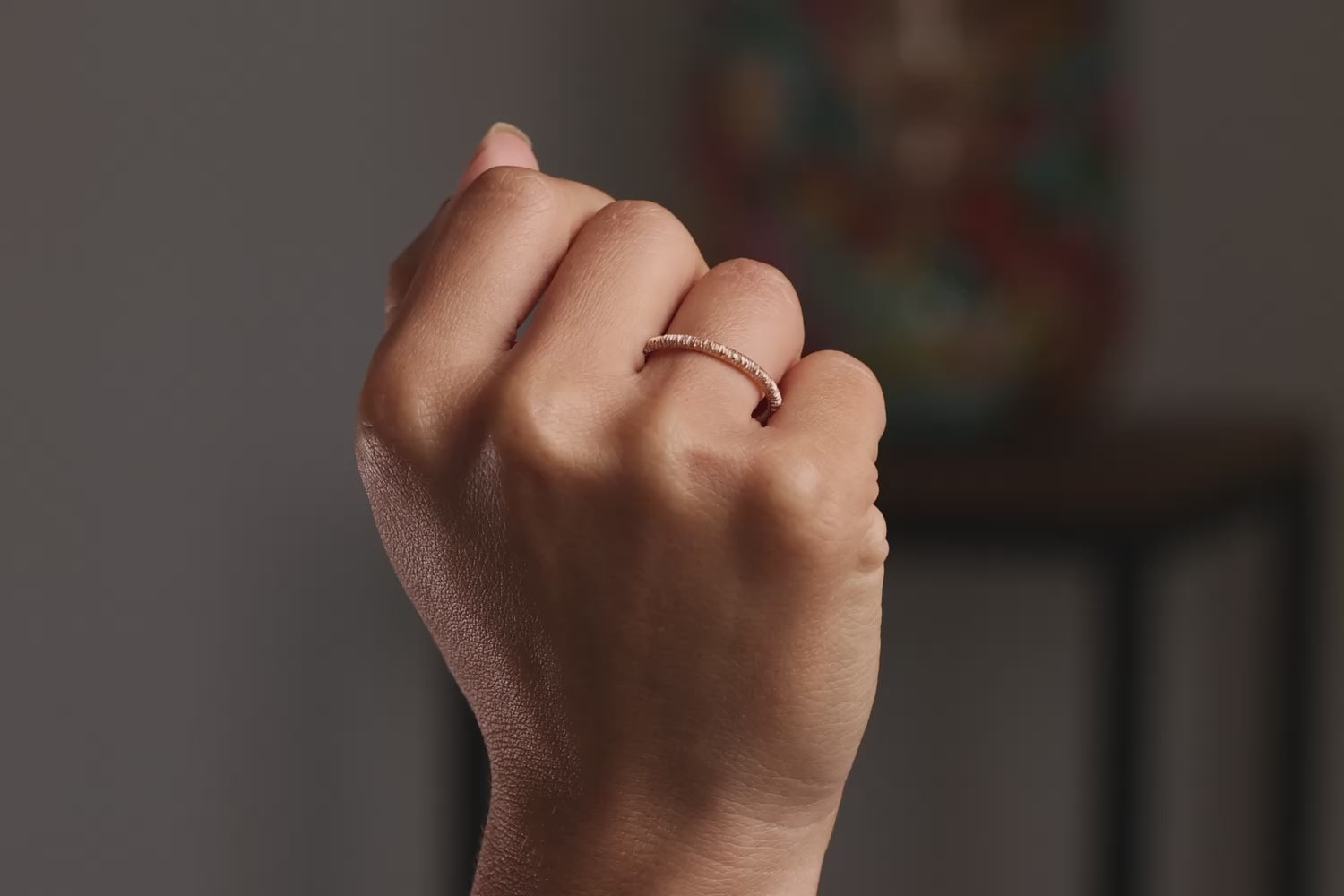 Der Verlobungsring "Räubertochter" im zeitgenössisch rustikalen Stil kombiniert ein schlichtes Design mit markanten Details. Die Oberfläche des Verlobungsrings ist stets individuell rau und verleiht dem Ring dennoch auf eine einzigartige Weise einen edlen Charakter. Ganz nach dem Motto: In jedem Winkel ein kleiner Sonnenstrahl, denn du bist meine Räubertochter. ♥
