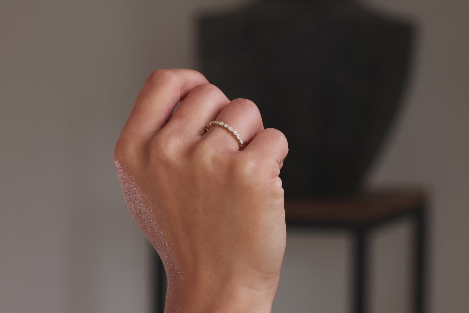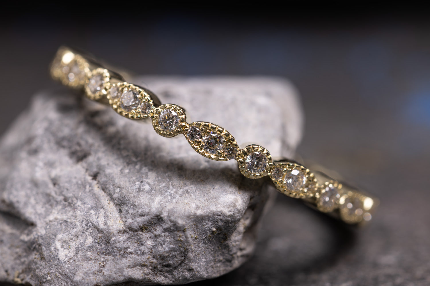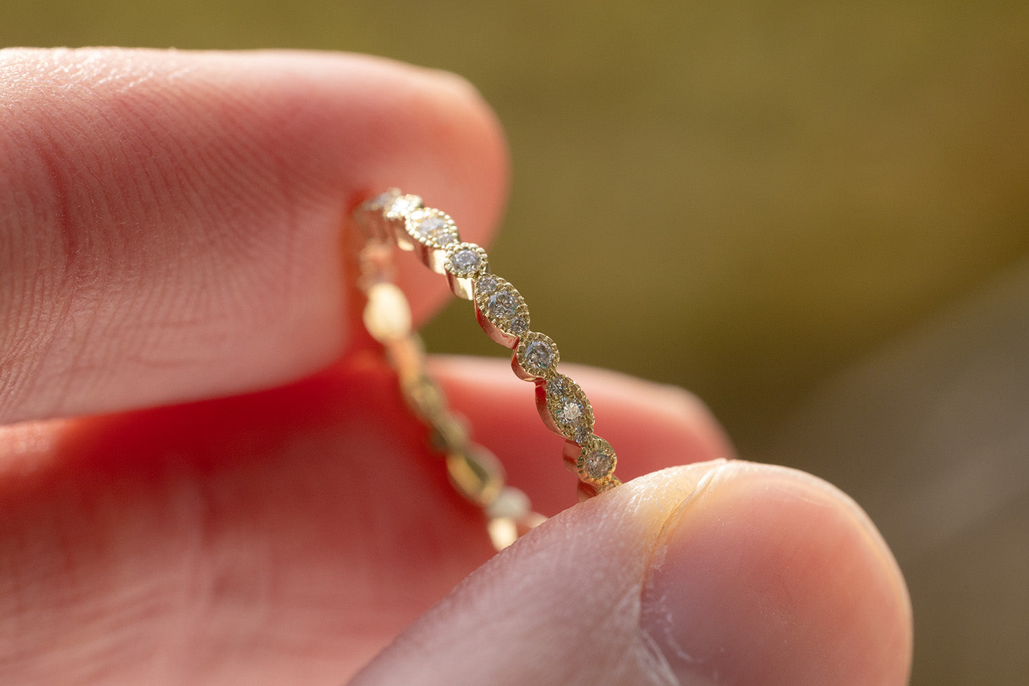 In dem Verlobungsring Rapunzel small sind insgesamt 25 kleine Diamanten eingefasst die je nach Ringgröße etwa um den halben Ring reichen.
