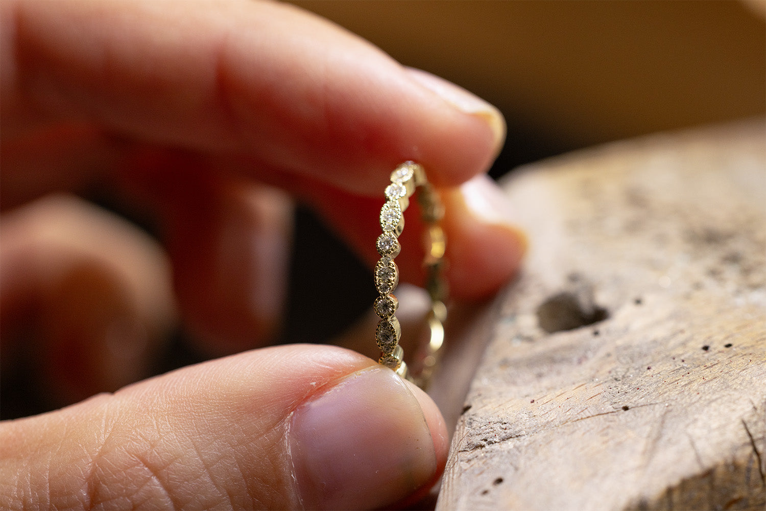 Jeder Ring wird in unserer Goldschmiedemeisterwerkstatt mit Liebe von Hand aus recycelten Edelmetallen angefertigt. Die Anfertigungszeit beträgt inclusive der Lieferzeit etwa 4-6 Wochen.