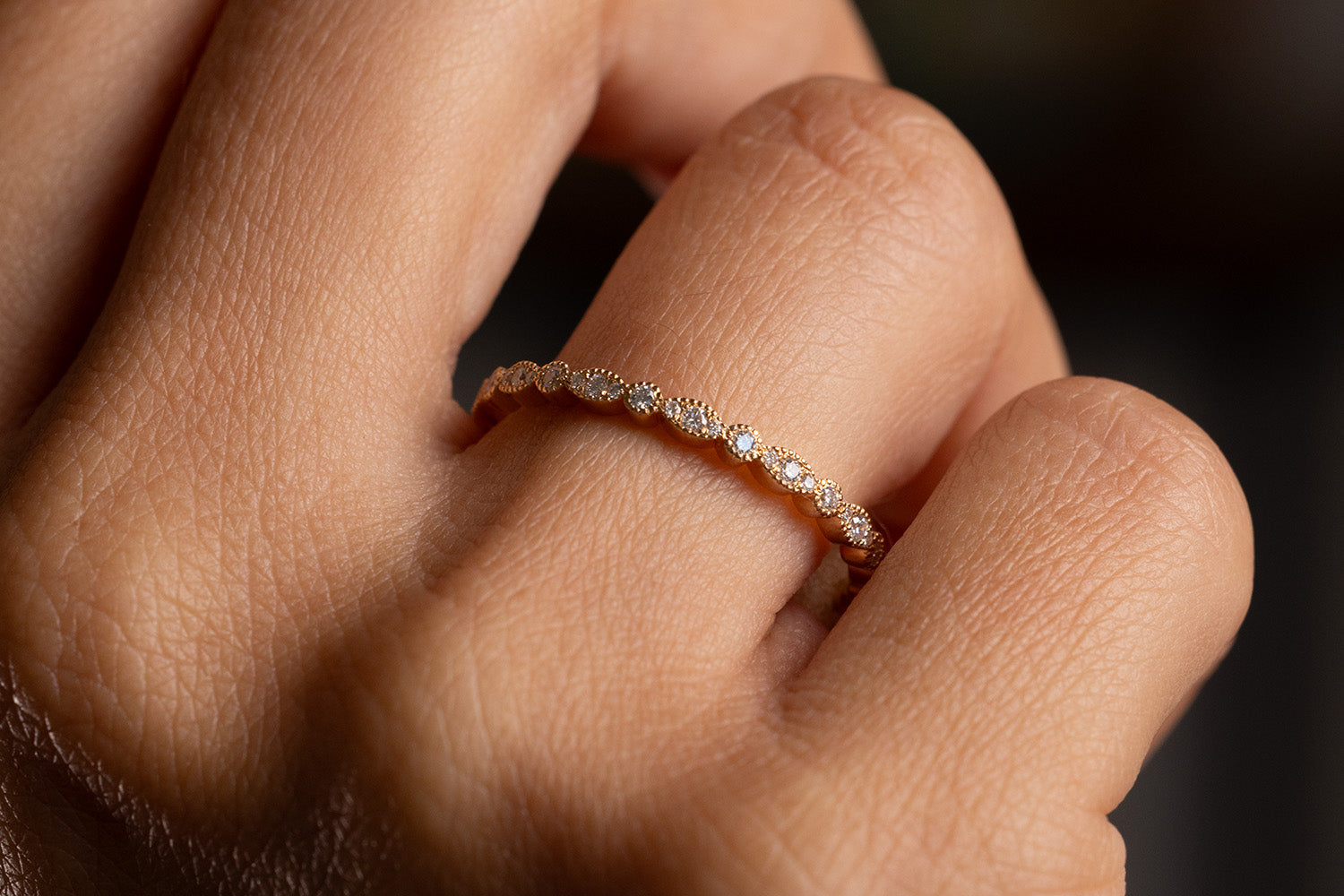 JA! Der Verlobungsring Rapunzel kann hervorragend als Vorsteckring zum Ehering dazu gesteckt werden. Durch die kleinen Öffnungen in dem floralen Muster wirkt der Verlobungsring Rapunzel small wunderbar leicht & luftig.