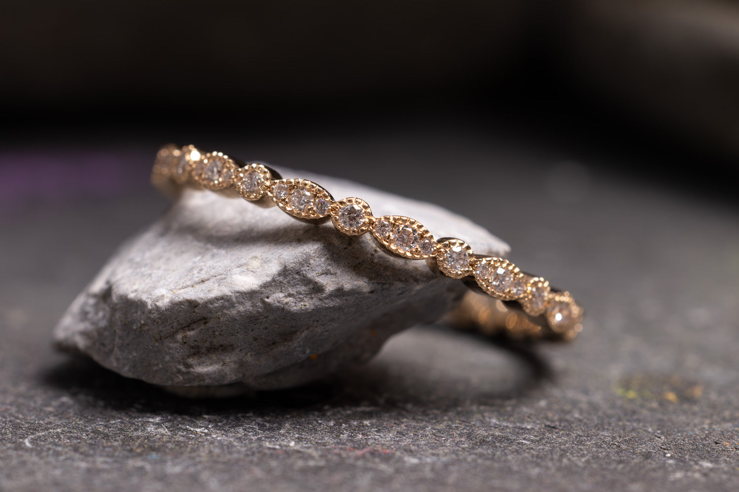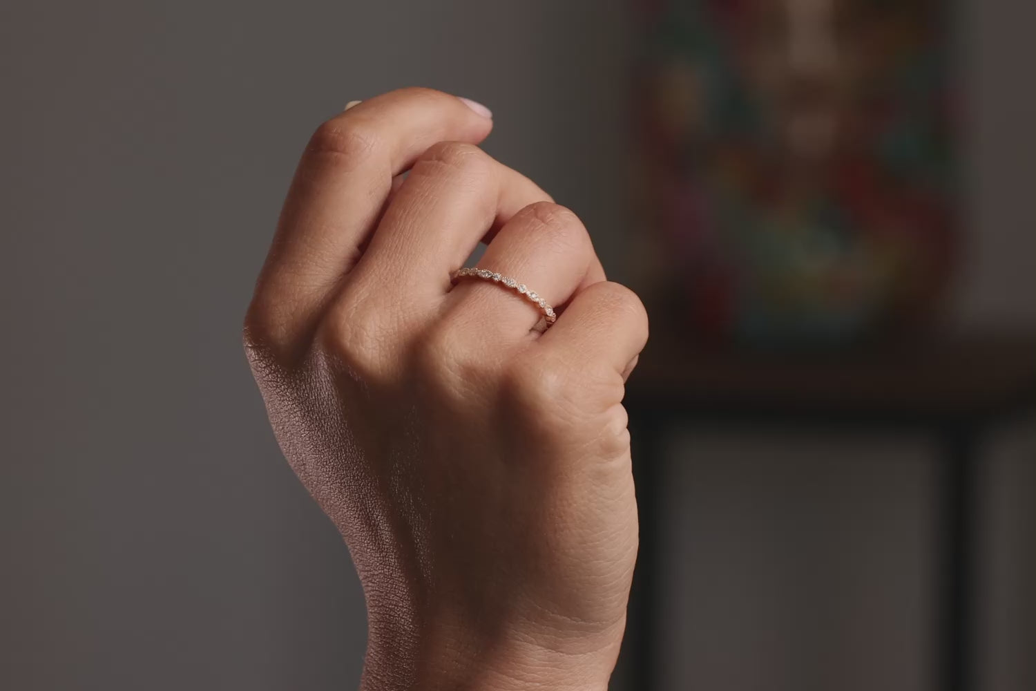 In dem Verlobungsring Rapunzel small sind insgesamt 25 kleine Diamanten eingefasst die je nach Ringgröße etwa um den halben Ring reichen.