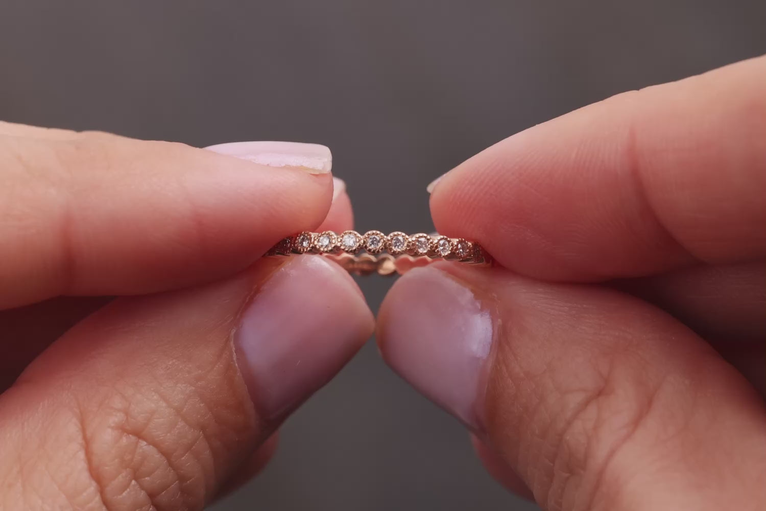 In dem Verlobungsring Sonnentau sind 15 kleine weiße Diamanten eingefasst.